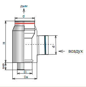 Элемент перехода от коаксиальной системы на раздельные потоки (широко применяется в поквартирном отоплении)